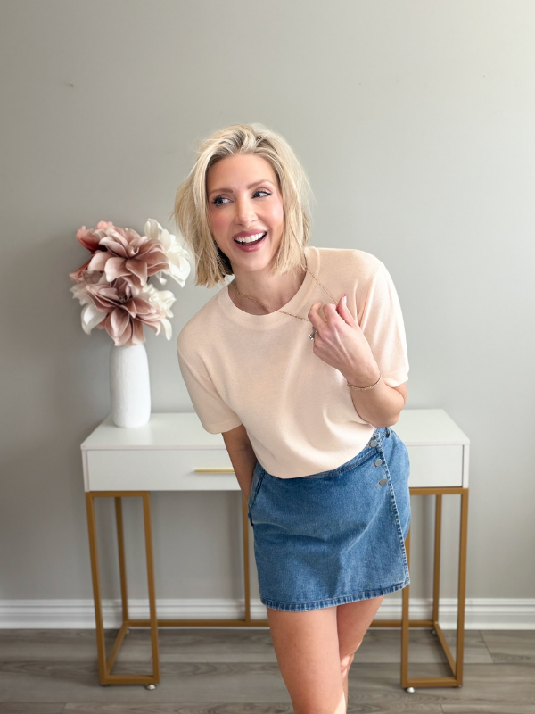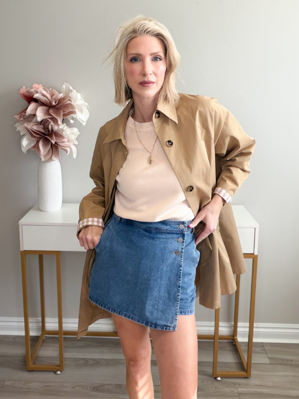 Our Wrap Up Denim Skort is the perfect mix of cute + practical with a flattering wrap-front detail and button accents that give it a polished, elevated feel. It has the girly vibe of a denim mini, but the built-in shorts make it easy to move in (yes please 🙌).
