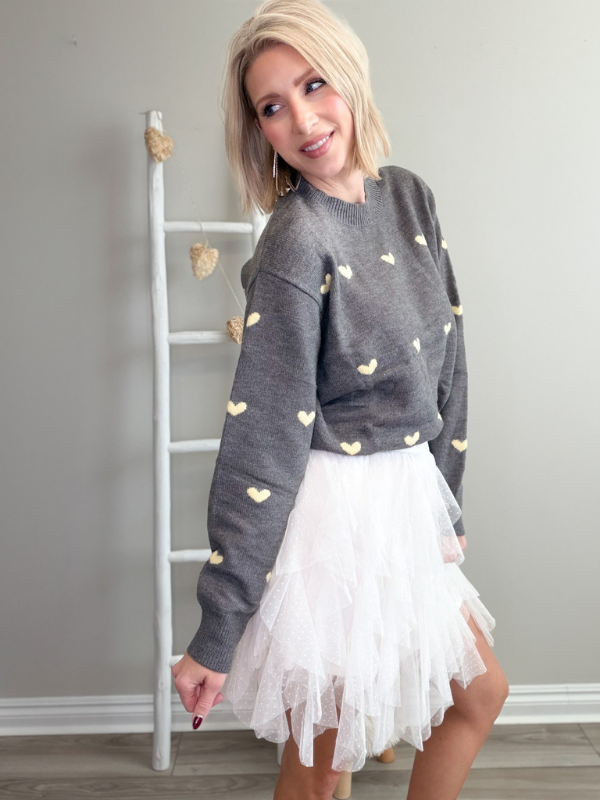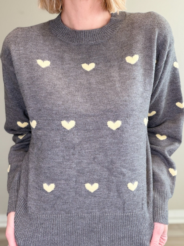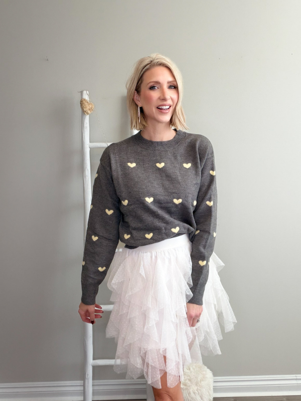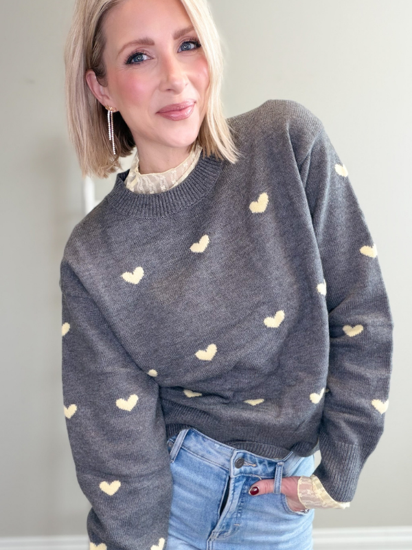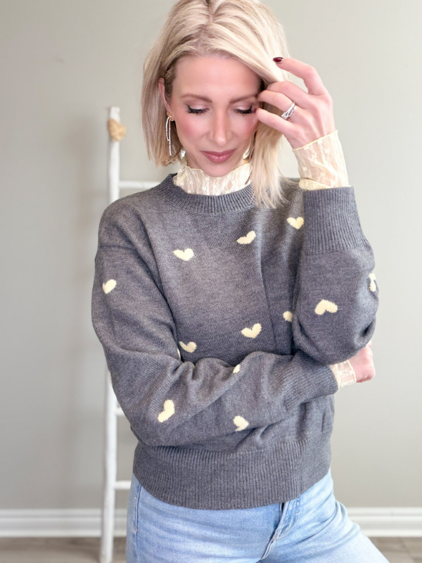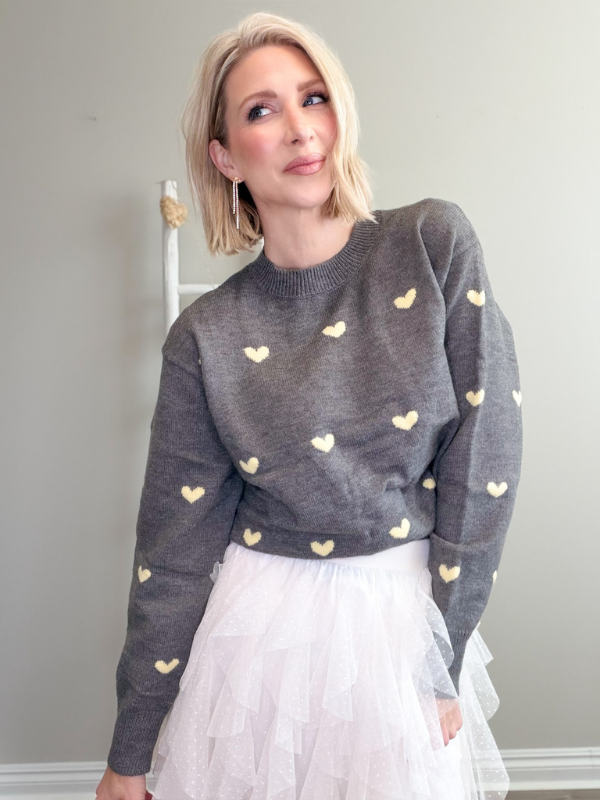 This one’s giving cozy with a side of cute 💕 A soft grey knit sprinkled with the prettiest buttery yellow hearts for that subtle Valentine-meets-everyday vibe. Easy, relaxed fit that’s comfy enough for lounging but cute enough for coffee dates, school drop-off, or casual Fridays. Pair it with denim, cargos, or a skirt and boots for an effortless outfit you’ll keep reaching for all season long. Cozy, playful, and totally lovable ✨