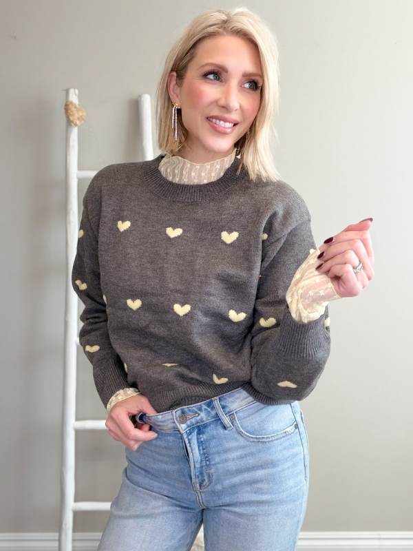 SWEETHEART STITCHED KNIT SWEATER - GRAY/LT.YELLOW