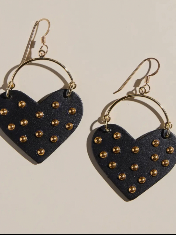 Make a statement with the Studded Harlow earrings. They feature a bold, wide heart shape and are crafted with gold studs applied by hand.